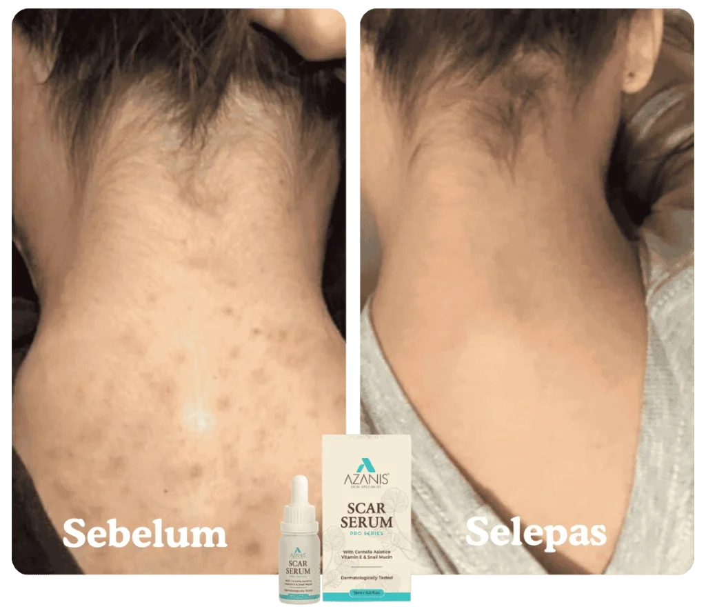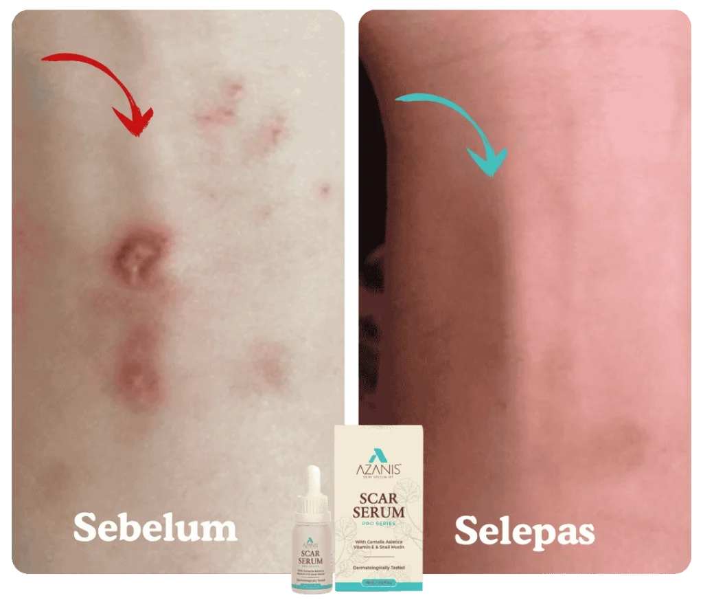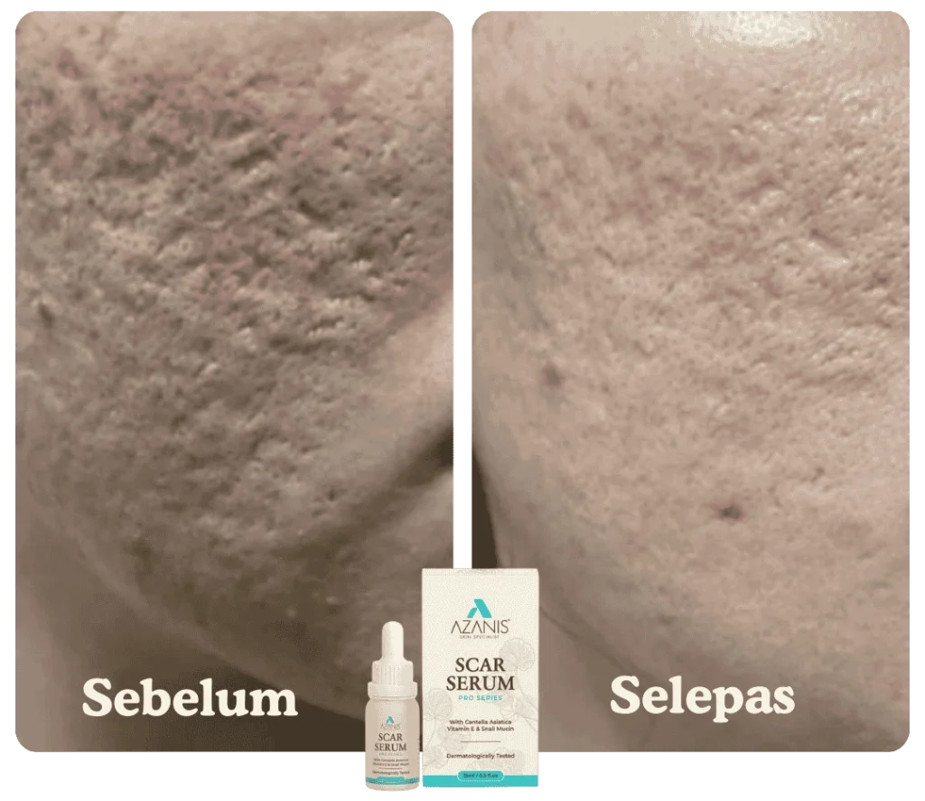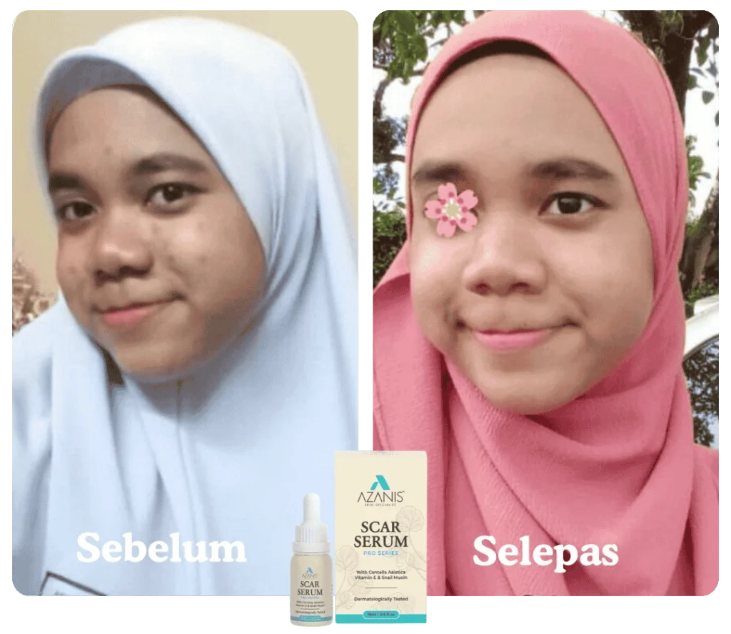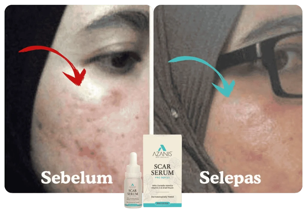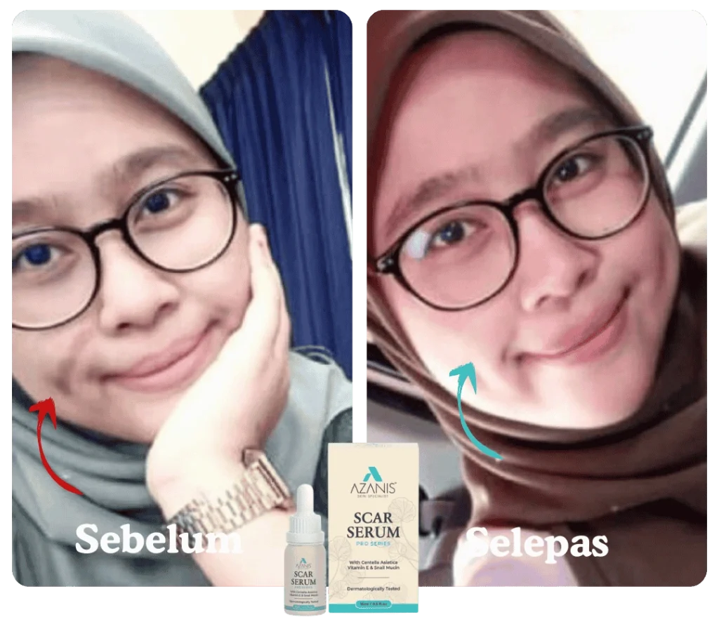 Dari parut jerawat, chicken pox, luka hingga parut czer — Ribuan pengguna dah buktikan kesannya. Inilah hasil sebenar sebelum & selepas dengan Azanis Scar Serum.