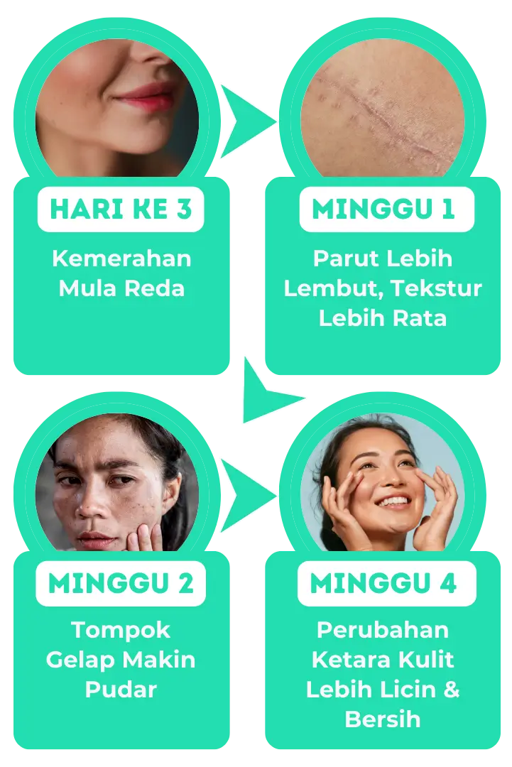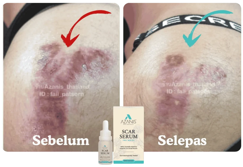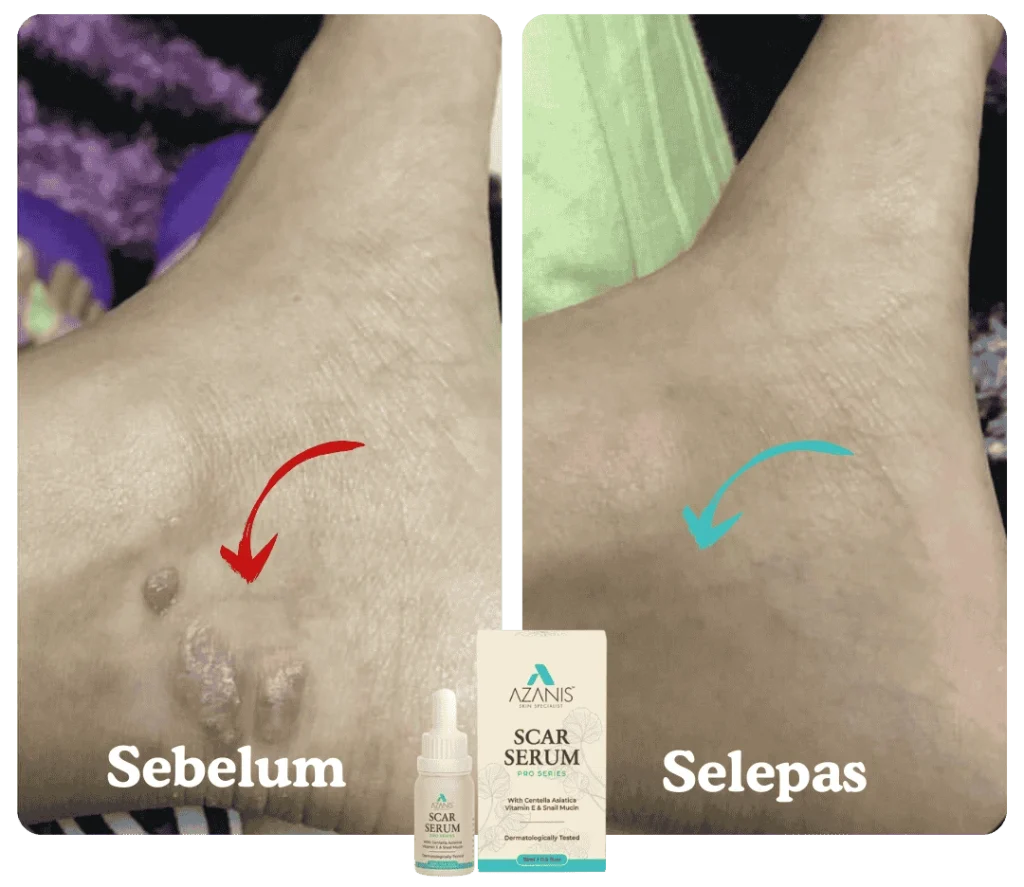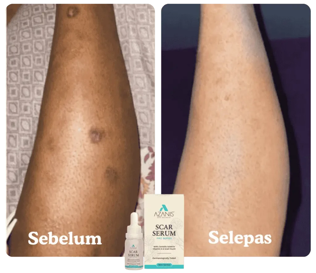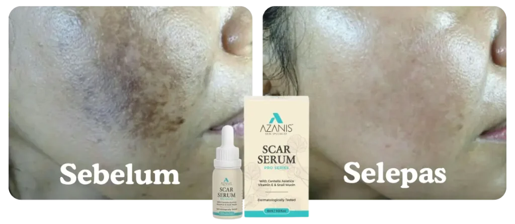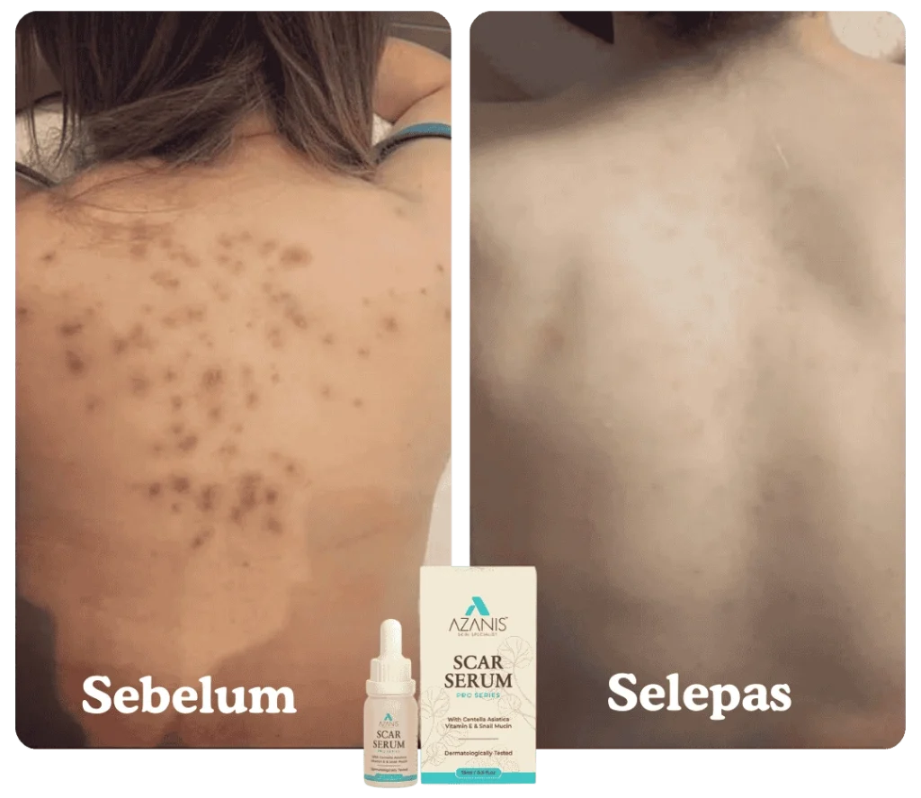 Dari parut jerawat, chicken pox, luka hingga parut czer — Ribuan pengguna dah buktikan kesannya. Inilah hasil sebenar sebelum & selepas dengan Azanis Scar Serum.
