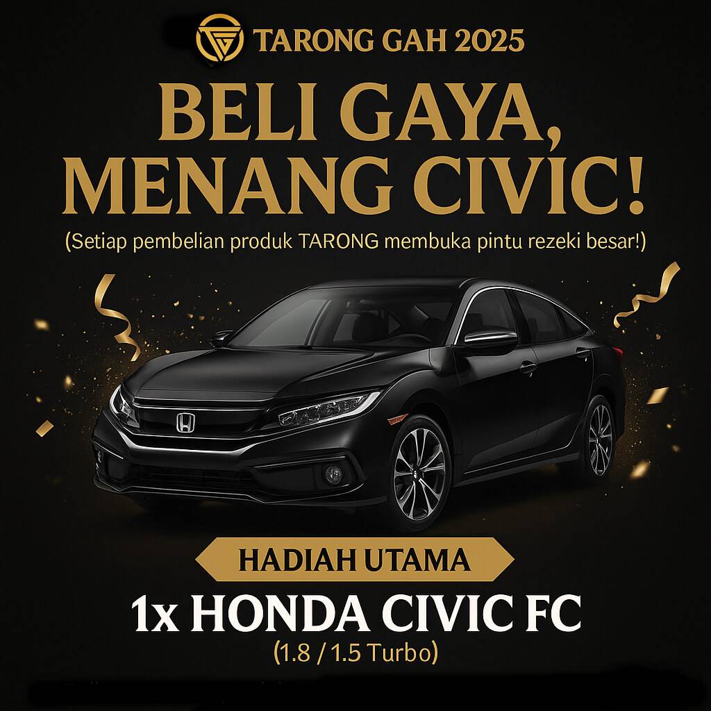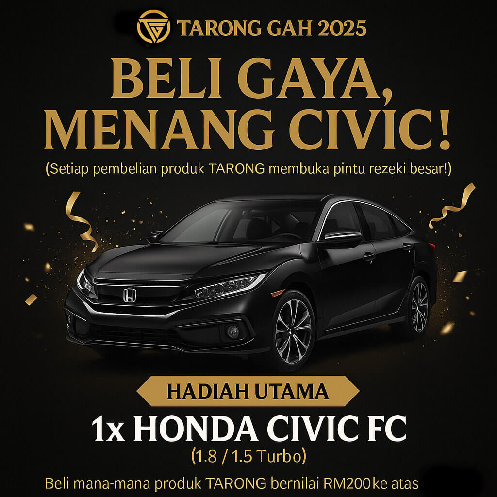 Setiap pembelian mana-mana produk TARONG bernilai RM200 ke atas melayakkan anda untuk menyertai cabutan bertuah paling GAH tahun ini! Daripada Gelang ion negatif, Smartwatch, QOBRA Tongkat Ali, BOXXA hingga Penrilis.